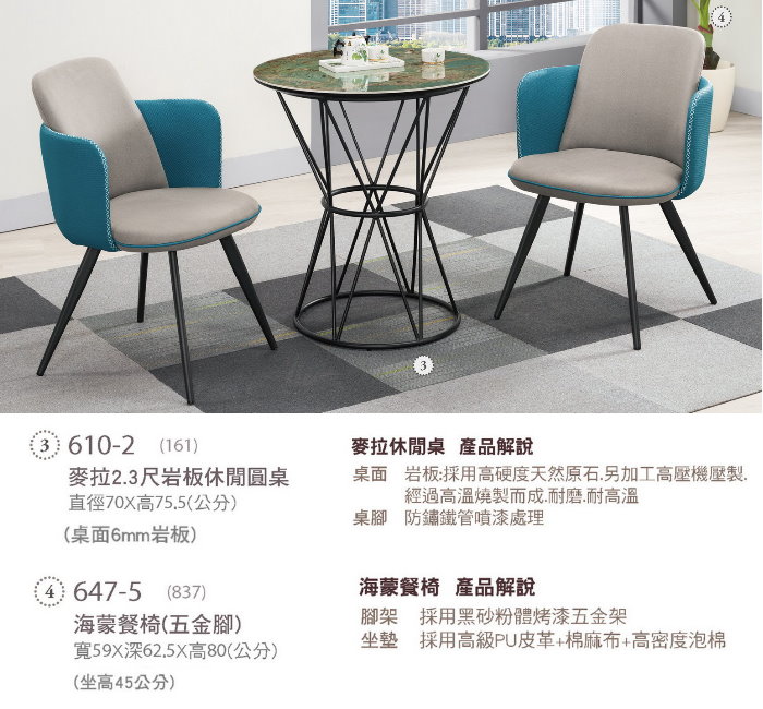 610-2 麥拉2.3尺岩板休閒圓桌