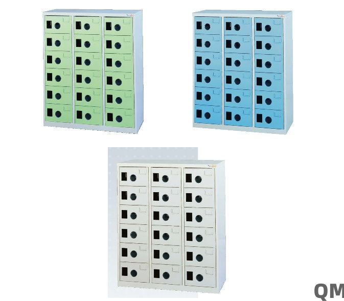 <<返回上一页 MC-5018 (18小門) 高級多用途置物櫃(鞋櫃) 发布时间:2022-05-12 17:22:55点击: W89*D35*H106.2 cm 1.門片為ABS耐衝擊一體射出成形、有多種顏色可作為色澤管理歸類 門片顏色 : 淺灰色、綠色、藍色三種2.後紐改用隱藏式插銷製作,不意損壞及脫落更加整齊美觀