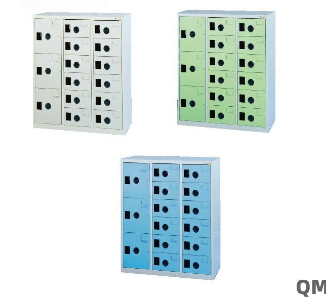 <<返回上一页 MC-5015 (12小3大門) 高級多用途置物櫃(鞋櫃) 发布时间:2022-05-12 17:24:44点击: W89*D35*H106.2 cm 1.門片為ABS耐衝擊一體射出成形、有多種顏色可作為色澤管理歸類 門片顏色 : 淺灰色、綠色、藍色三種2.後紐改用隱藏式插銷製作,不意損壞及脫落更加整齊美觀