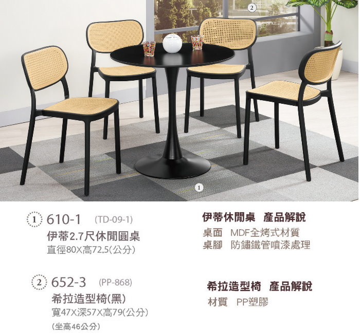 610-1 伊蒂2.7尺休閒圓桌