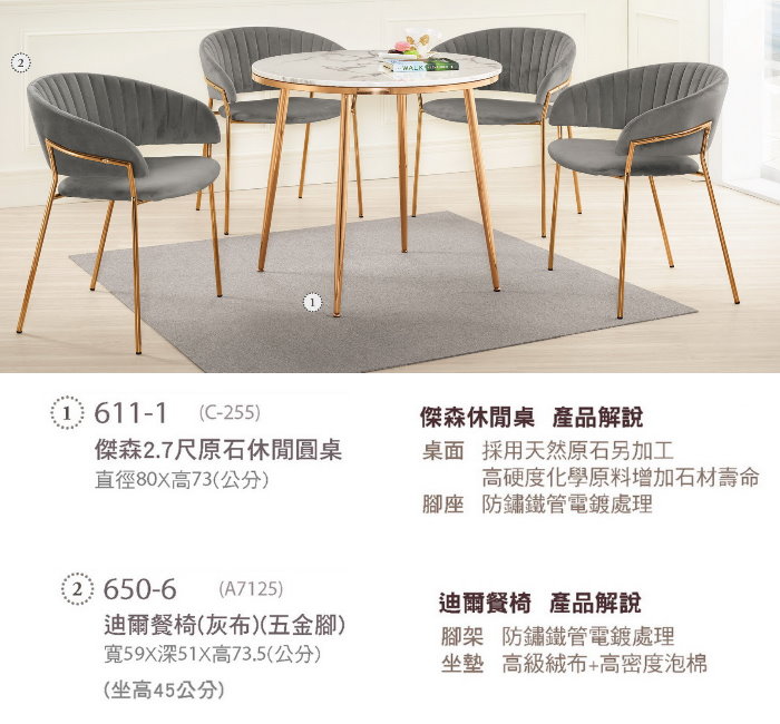 610-2 麥拉2.3尺岩板休閒圓桌