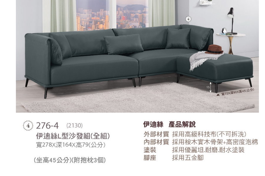 276-4 伊迪絲L型沙發